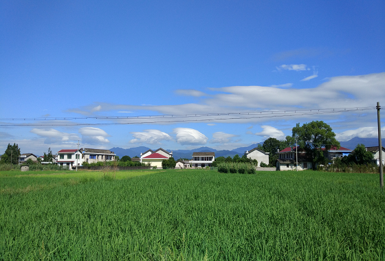 一大早,书记与村长领着我们一行人边走边介绍村中的相关情况。“我们村处在一个大盆地,周围都是山,风景美得很!”乡村的清晨,树林、田野、山草地都被雨水冲洗得清清爽爽。袅袅炊烟漫漫升起在乡村的上空,给这小小的乡村写下了几份诗情画意。山雀在树枝上蹦跳着,树枝一晃,把叶子上面的露珠洒落了一地。虽说乡村的泥土气息很重,我却依然可以嗅到花儿的芳香与甜蜜。透过树林的那道阳光,望着这美丽的乡村,漂亮无法形容。
