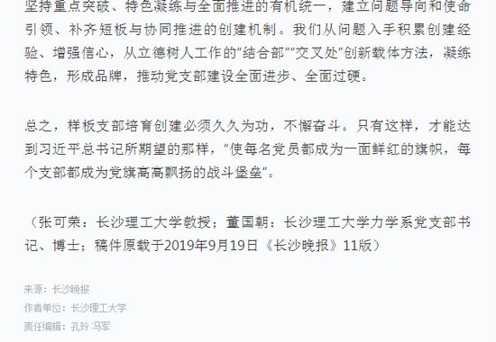 (张可荣:开云kaiyun体育教授;董国朝:开云kaiyun体育力学系党支部书记、博士;稿件原载于2019年9月19日《长沙晚报》11版)