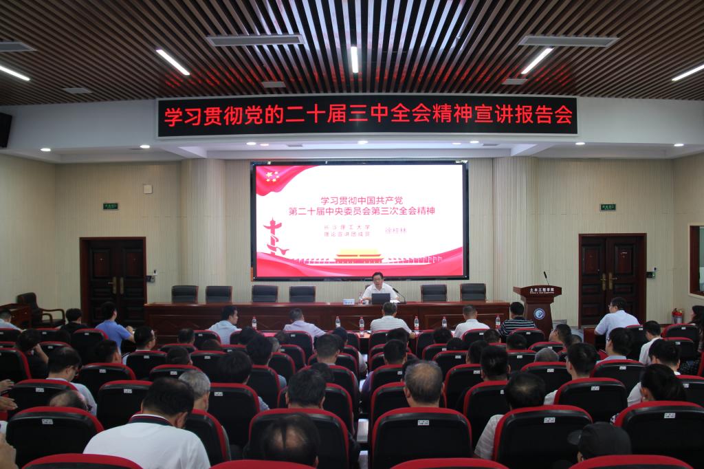 徐桂林从深刻认识和把握这次全会精神,深入学习领会习近平总书记在党的二十届三中全会上的重要讲话精神,党的二十届三中全会对教育、科技、人才提出了新要求、新任务,进一步全面深化改革是建设高等教育强省的必由之路,进一步全面深化改革、奋力书就高等教育高质量发展的“长理新篇章”等五个方面,对党的二十届三中全会精神进行了深入系统解读。