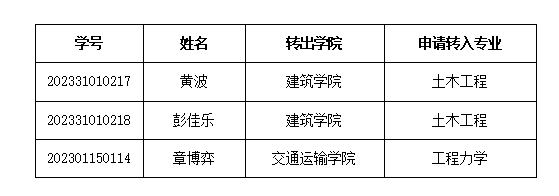 根据关于《开云kaiyun体育本科生转专业(类)管理办法》(长理工大教〔2023〕1号)、《关于做好2023级在校本科生转专业(类)工作的通知》(教通字[2024]9号)、《土木工程学院2023级本科生转专业工作方案》的相关规定,经学生个人填报志愿,学院资格初审和综合考核,现将土木工程学院拟同意2023级本科生转专业接收名单公示(排名不分先后)。