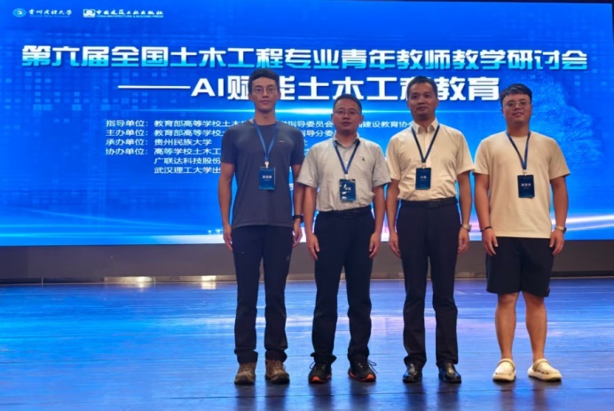 由教育部高等学校土木工程专业教学指导分委员会主办,贵州民族大学和中国建筑工业出版社承办的“第六届全国土木工程专业青年教师教学研讨会”于2025年8月12日-8月15日在贵州贵阳召开,土木学院副院长付果带领建工系主任李毅、岩隧系蒋望涛和交通道路系吴高桥参会。本次研讨会以“AI赋能土木工程教育”为主题,以促进AI赋能下土木工程专业课程体系和教学内容更新、教学方法创新、教学能力提升,全面提高土木工程专业青年教师水平和教学效果,助力青年教师掌握现代工程教育理念和教学方法。