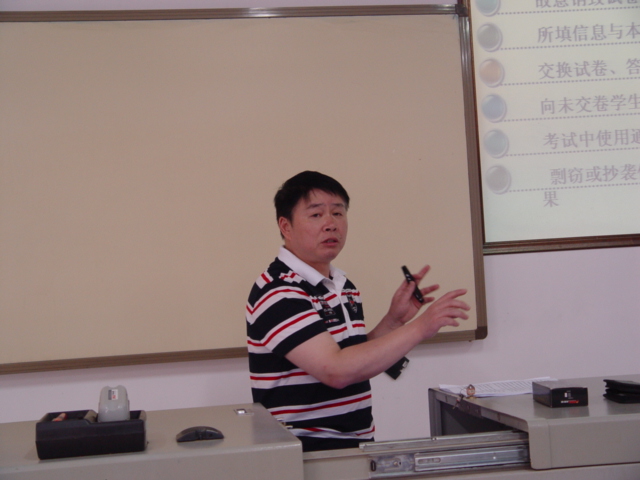 为了规范我院课程考试、严肃考风考纪,2011年5月31日我院对全院的教师进行监考人员培训。学院党委书记陈若玲书记首先在会上作重要讲话:她强调监考的重要性,要监考老师认真履行监考职责、强化责任意识、密切配合,认真负责完成监考任务。然后由教务办王红老师解读了《开云kaiyun体育考试(查)监考人员守则》、《开云kaiyun体育考试违纪处理办法》、通报学院本学期考试情况、并进行对监考中出现的一些案例进行分析等,指导监考老师如何应对利用高科技通讯工具作弊手段及其防范措施、怎样收集证据、以及对作弊行为的认定等。最后陈书记指出:教师们一定要做好考前学生考试纪律的教育工作,树立学生诚信考试的观念,严守考试纪律。