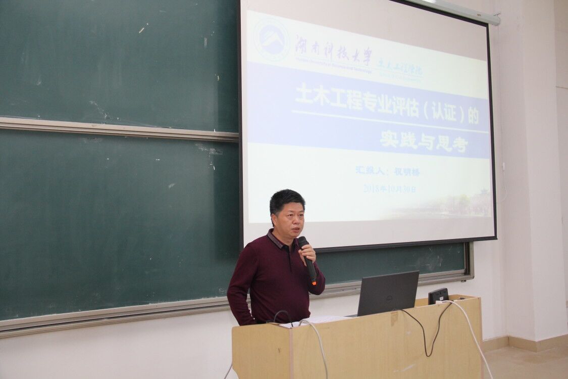 祝明桥教授的报告题为《土木工程专业评估(认证)的实践与思考》。报告从以学生为中心促进学生发展、以成果为导向完善培养方案、以过程持续改进提高教学质量三个维度,探索了土木工程专业以评估认证作为新起点,在持续改进中提高办学水平的理念。
