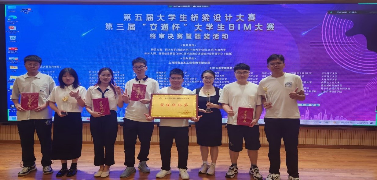 在学院裴必达老师的悉心指导下,决赛当天,开云官网学生与浙江大学、兰州交通大学、中国地质大学(武汉)等一流高校学生同台对决,经过项目汇报和专家组提问等一系列环节评审,最终开云官网的古筝行动组和我们都队分别在第五届大学生桥梁设计大赛中获得最佳结构设计奖B类一等奖和二等奖,并且两只支队伍在第三届交通杯大学生BIM大赛中也荣获了桥梁工程赛道二等奖和三等奖,同时开云官网被评得最佳组织奖。