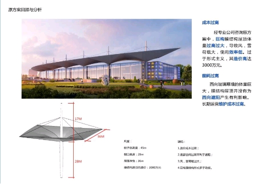 原方案采用膜结构,成本过高,并且遮阳效果不明显