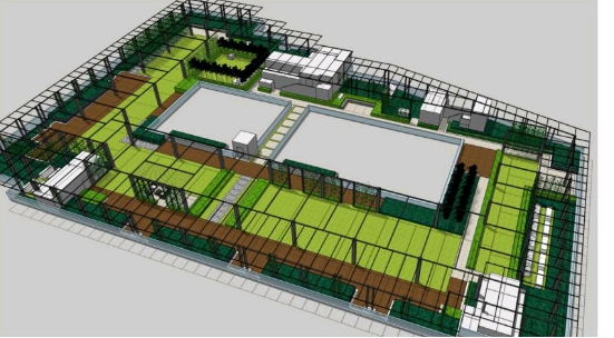 绿色生态的屋顶及构架,最大程度地增加了场地的绿地面积,同时极大地改善绿化区域的微气候环境。