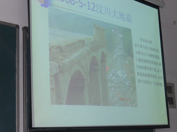刘老师所讲授的结构健康监测是目前国内土木工程较新颖的工程技术、也是未来大型、特大型土木工程可能采用的技术,其讲座内容具有较好的前瞻性和引导性。其以在广东平胜大桥实施健康监测时所取得的理论成果和工程经验,对健康监测技术细节的讲授既深入浅出又翔实具体,PPT制作精良、图文并茂。其用鲜活的实例和详尽的数据介绍的土建工程安全现状与问题对学生影响巨大、学生反应强烈,精彩的讲座受到了师生们的热烈欢迎,同学们纷纷以热烈掌声对刘老师的讲座表示感谢。