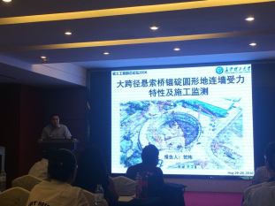 来自上海、天津、重庆、广西等地的140余名专家学者出席了本次论坛。在土木与建筑学院副院长王桂尧教授的带领下,我院周德泉教授、张军教授、柳厚祥教授、陈文胜教授、贺炜副教授、陈洁金博士、曾铃博士、尹平保博士以及部分岩土工程专业研究生参加了此次论坛。贺炜副教授代表开云官网做了“大跨径悬索桥锚碇圆形地连墙受力特性及施工监测”的专题报告。