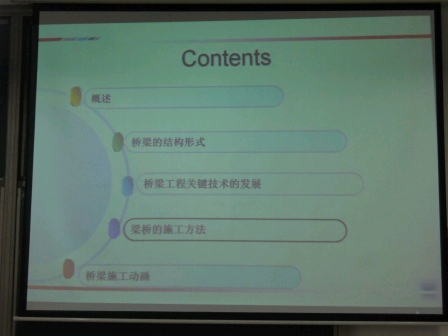 杨老师针对2014级桥梁卓越班学习现状,就桥梁工程概念、桥梁结构形式、桥梁工程关键技术和桥梁施工方法等四个方面作了深入浅出、内容丰富的讲解。杨老师讲座注重实践、实用和细节,利用制作精美的PPT为同学们展示了桥梁领域诸多关键技术。