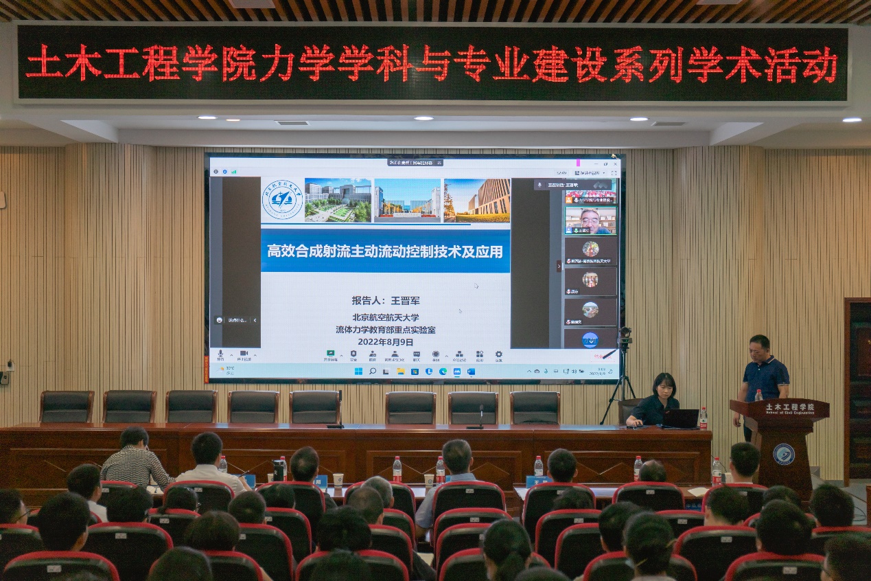 8月9日上午9时,在开云官网工程力学国家一流专业与力学学科建设发展研讨会上,国家杰出青年科学基金获得者、教育部“长江学者”特聘教授、国家自然科学基金创新研究群体学术带头人、北京航空航天大学航空科学与工程学院王晋军教授应邀作了题为《高效合成射流主动控制技术及应用》的学术报告。报告由土木工程学院副院长韩艳教授主持,土木工程学院院长王磊教授、哈尔滨工业大学王超教授、力学系全体教师和100余位研究生线下参加了此次报告,部分专家、学者线上聆听了此次报告。