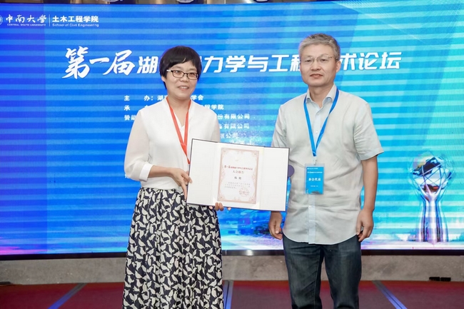 我院副院长韩艳教授与力学系主任彭旭龙副教授带领力学系二十余位师生参加了此次会议。韩艳教授应邀作了题为“大跨度悬索桥三维非线性颤振分析研究”的主题报告,并获得湖南省力学学会颁发的大会荣誉证书。