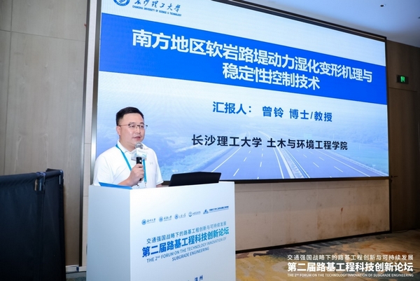 2025年7月4日至6日,第二届路基工程科技创新论坛在浙江省温州市成功举办。本次论坛由温州大学、重庆大学、山东大学、山东交通学院和中国岩石力学与工程学会路基工程专委会主办,温州大学建筑工程学院等单位承办,以“交通强国战略下的路基工程创新与可持续发展”为主题,聚焦复杂环境路基工程的前沿科学问题与关键技术难题,并就智能化、生态化、低碳化的路基工程技术展开研讨。本次论坛共有来自全国40余家高校和科研机构的300余名专家学者、科技人员和研究生参加。我院曾铃教授、周德泉教授、张永杰教授、尹平保教授、邱祥副教授以及李涛、杨琪毅等师生参加了此次创新论坛,曾铃作了题为“南方地区软岩路堤动力湿化变形机理与稳定性控制技术”的特邀报告。