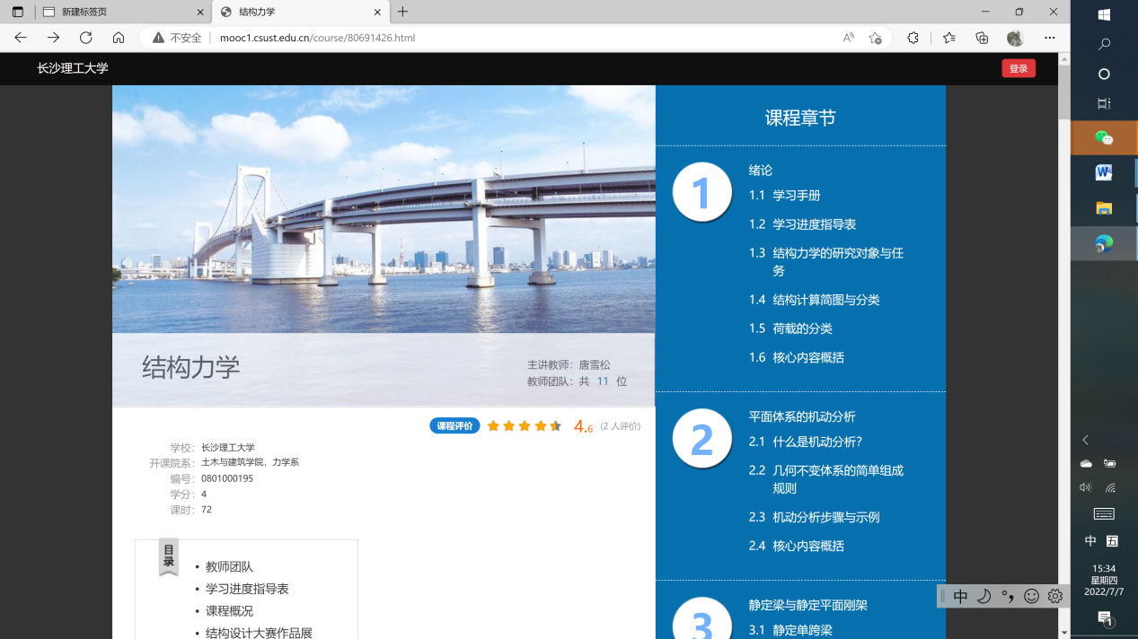 结构力学课程,2014年成为开云kaiyun体育首门建成并投入使用的慕课课程,2018年成为门批湖南省精品在线开放课程。