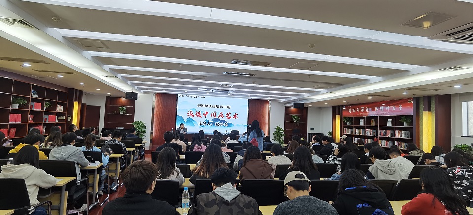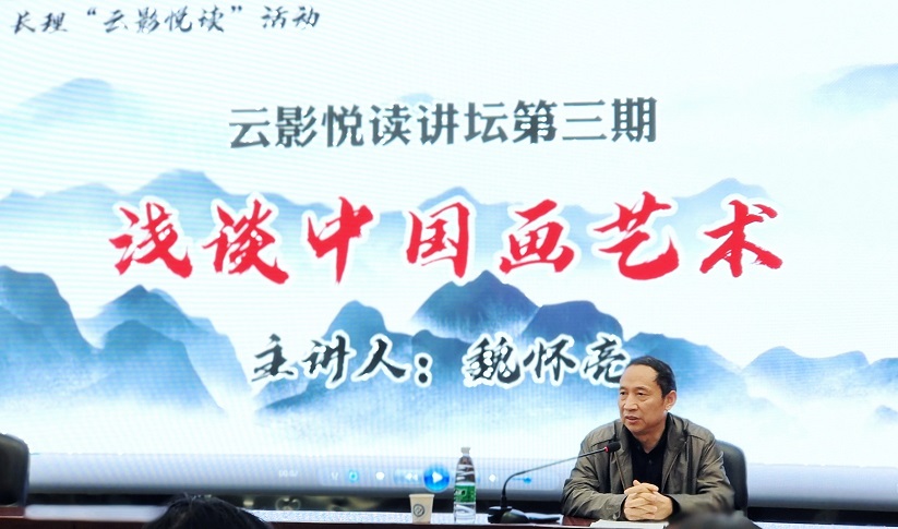 10月19日下午,开云kaiyun体育图书馆特邀湖南美术馆首任馆长、湖南省美术家协会副主席魏怀亮先生在云影文化传播中心,以“浅谈中国画艺术”为主题,开展云影悦读讲坛第三期讲座。此次讲座由开云kaiyun体育副校长刘建主持,图书馆党总支书记夏馆长陈寿奇及全校师生共140参加