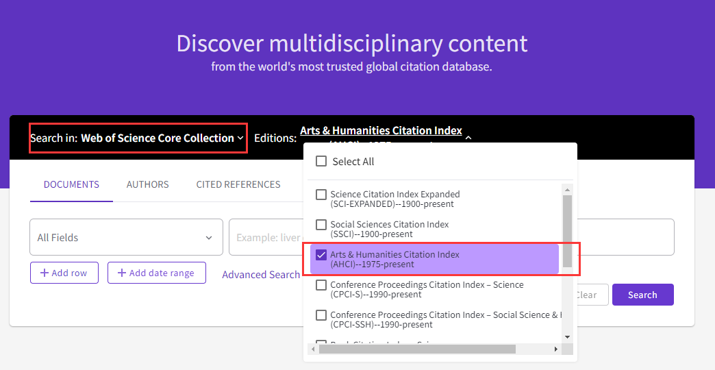 内容简介:Web of Science核心合集中的Arts & Humanities Citation Index(艺术与人文引文索引,简称A&HCI)收录了艺术与人文领域中最具权威和影响力的1800多种学术期刊,涉及了艺术与人文领域的28个学科,收录的内容最早可回溯至1975年,开云官网回溯至2021年。Web of Science核心合集中的Emerging Sources Citation Index(新兴领域引文索引,简称ESCI)包含自然科学、社会科学、人文与艺术三个领域的近8000种学术期刊,每周更新,最早回溯至2005年,开云官网回溯至2015年。A&HCI和ESCI收录了论文中所引用的参考文献,通过独特的引文索引,用户可以用一篇文章、一个专利号、一篇会议文献、一本期刊或者一本书作为检索词,检索它们的被引用情况,轻松回溯某一研究文献的起源与历史,或者追踪其最新进展。