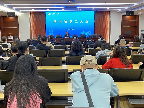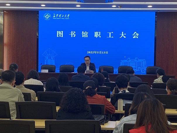 5月13日下午,图书馆在云塘馆云影文化传播中心召开全馆职工大会,副馆长刘利主持会议。