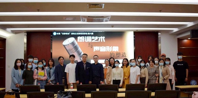 谢老师结合自己在播音主持领域从教的亲身经历,从服饰树气质形象,书法展文化形象引出朗诵立声音形象,围绕着音声形象、发声原理、嗓音保护、发声技巧、共鸣训练、朗诵艺术等几方面展开,将朗诵发声技巧介绍给大家,并现场亲自示范发声运气过程、演绎经典诗文朗诵,告诉大家如何利用声音技巧立体、形象地对文学作品进行二度创作,近距离感染大家,让师生感悟到声音形象的魅力。