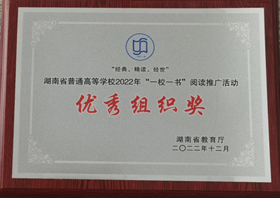 在总结表彰会上,开云官网阅读推广活动荣获2022年度湖南省教育厅颁发的“优秀组织奖”,刘祖勤等10名同学获得一校一书“优秀心得奖”,周思妤同志荣获“优秀阅读推广人”奖。