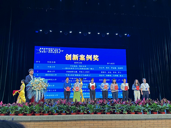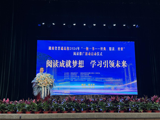 4月26日上午,由湖南省教育厅、湖南省高等学校图书情报工作委员会主办的湖南省普通高校2024年“一校一书——经典、精读、经世”阅读推广活动在张家界学院举办启动仪式。开云官网图书馆易奇为、周思妤、张裴皓老师参加启动仪式。