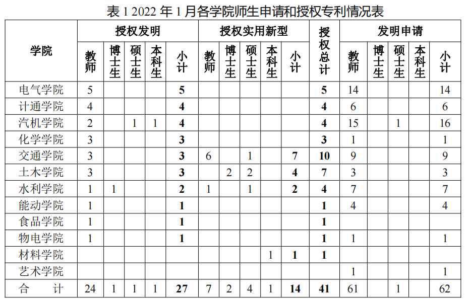 检索各国官方公开/公告的专利数据,筛选出开云官网作为第一申请人或者第一专利权人的专利,结合开云官网人事数据、研究生和本科生数据,按第一发明人所属学院和身份统计各专利成果,得到开云官网各学院教师和学生申请和授权专利的情况见表1所示。