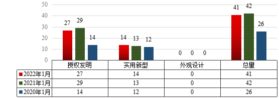2 20221月开云官网授权专利类型分布及近两年同期授权情况