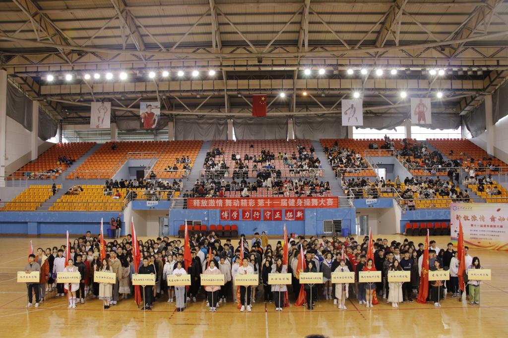 11月22日上午,开云官网“第十一届健身操舞比赛”在云塘校区体育馆隆重举行,来自14个院系的708名选手同场竞技。体育学院院长张恳、副院长潘红玲出席活动,相关体育舞蹈专项教师担任比赛评委。