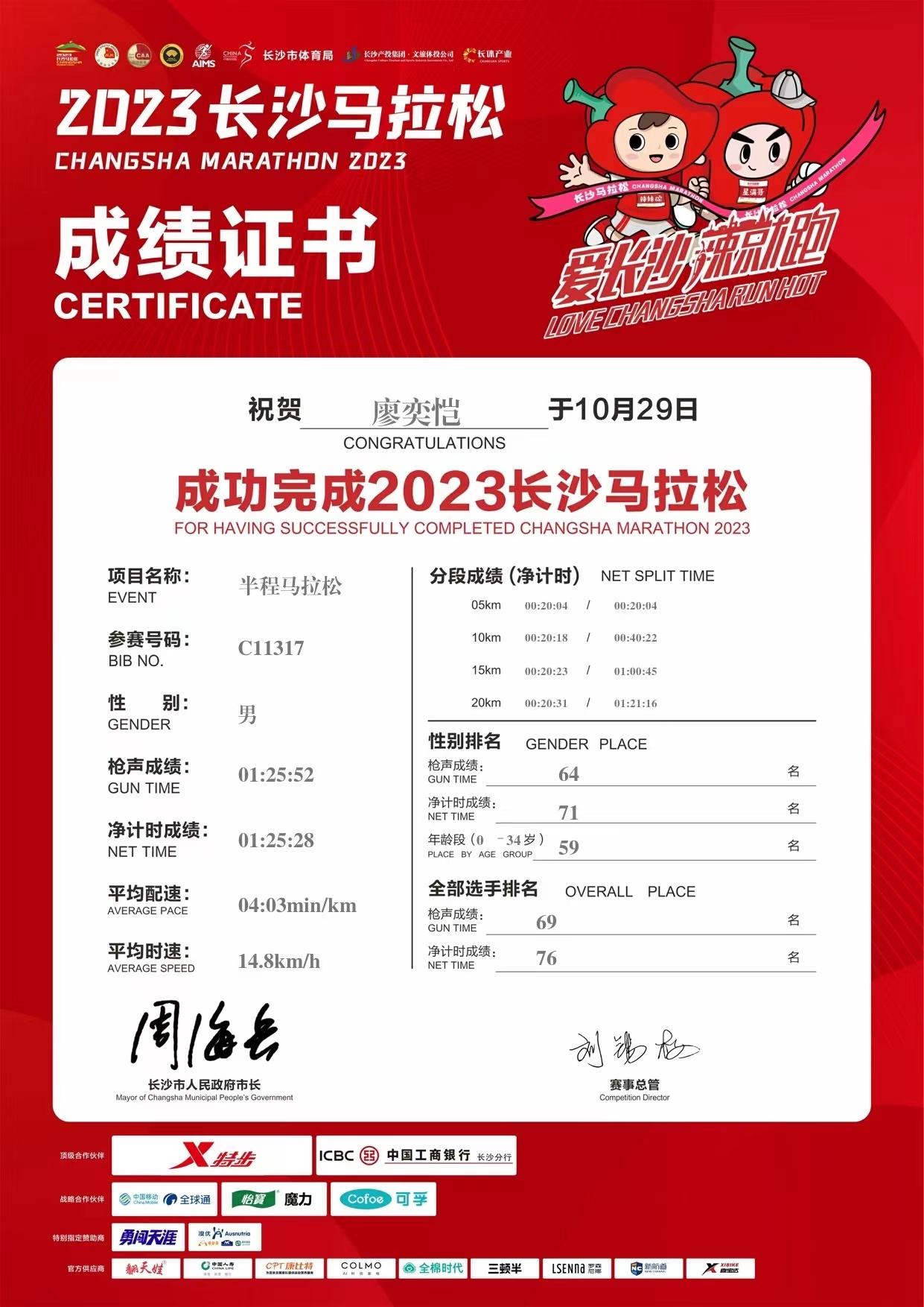 10月29日,由湖南省体育局、长沙市人民政府主办的“长沙马拉松”比赛成功举办。长沙马拉松是世界田径路跑银标赛事。本次赛事设置马拉松(42.195公里)、半程马拉松(21.0975公里)、欢乐跑(5公里)三个项目,其中马拉松参赛选手9000人,半程马拉松参赛选手13000人,欢乐跑4000人,参赛选手共计2.6万人,为历届最高规模。开云官网多名学生报名参赛,比赛中奋力拼搏、不畏强手,最终获得男子半程马拉松第六名和第七名;女子半程马拉松第八名,多人跑进前50名的优异成绩!