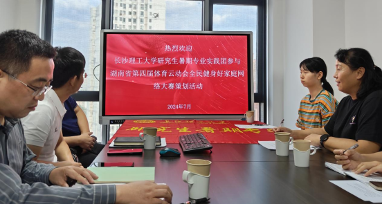 为了确保赛事的公平、公正与公开,刘丽云教授就评分标准、参赛规则、技术保障等方面提供了建议与意见,实践团成员也与湖南省湘体有限公司进行了深入讨论。湖南省湘体有限公司表示将利用先进的网络技术和大数据分析,对参赛作品进行高效、准确的评审,同时加强网络安全防护,保障参赛者的信息安全。研讨结束时,刘丽云教授表示:“希望通过本次大赛,不仅能在全省范围内掀起一股家庭体育的新风尚,更能引导广大民众树立健康第一的生活理念,让体育成为每个家庭不可或缺的一部分。让我们携手努力,共同打造一场精彩纷呈、意义非凡的全民健身盛会!”