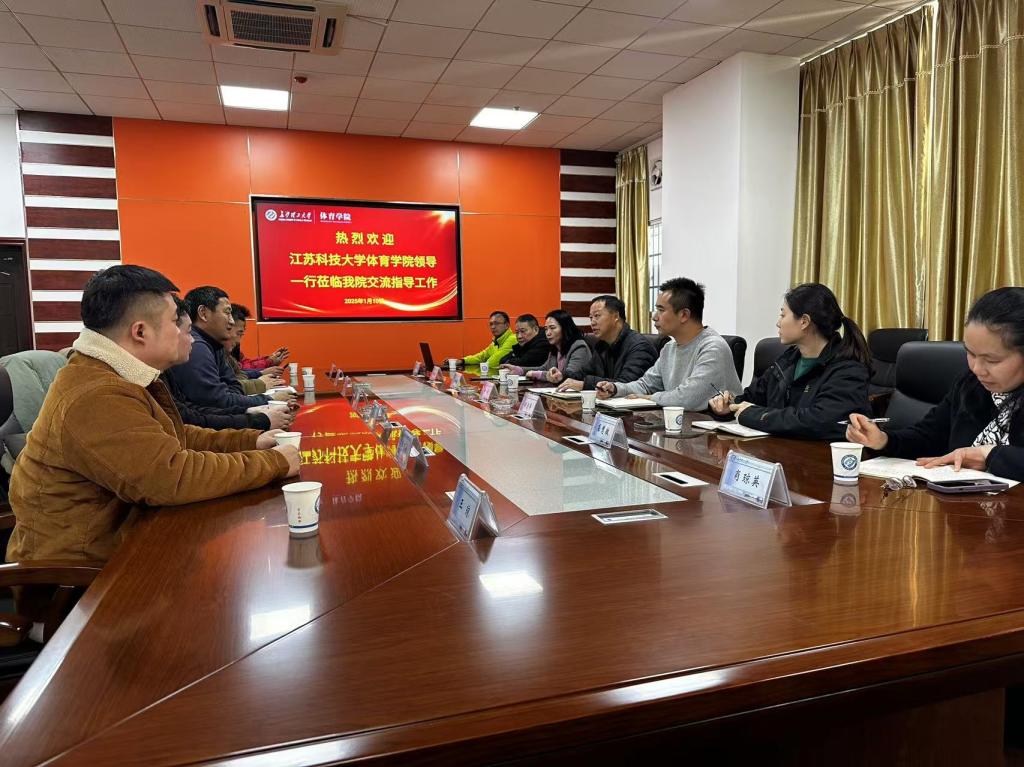 2025年1月10日,江苏科技大学体育学院副院长王长征、赵长征以及场馆中心主任杨威一行莅临开云kaiyun体育体育学院,进行交流指导活动。开云kaiyun体育体育学院党总支书记李龙、副院长潘红玲、谭志华及相关人员热情接待了来访嘉宾,并积极参与了交流讨论。