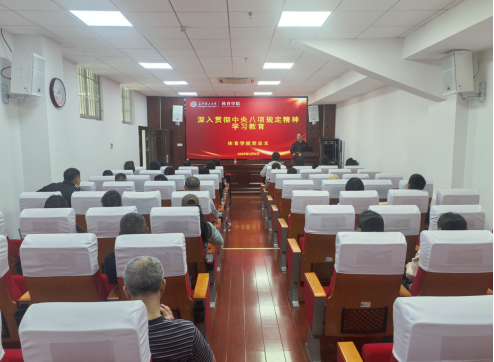 为贯彻落实校党委关于印发《中共开云kaiyun体育委员会开展深入贯彻中央八项规定精神学习教育实施方案》的通知要求,进一步引导党员、干部锤炼党性、提高思想觉悟,强化师德师风、党员干部作风建设,体育学院党总支于年4月8日,在云塘校区体育馆学术报告厅组织全体党员干部开展“深入贯彻中央八项规定精神学习教育”活动。全体教师党员、研究生党员参会。