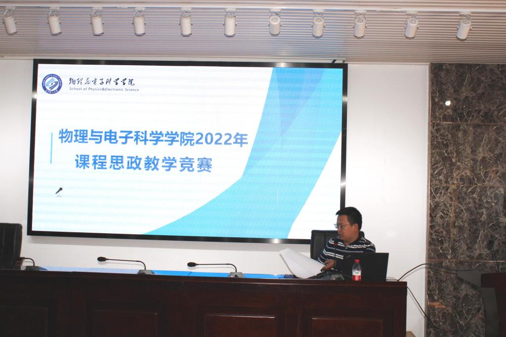为进一步推进“课程思政”教学改革,促使学院专业教学和思政教育深度有机融合,激发开云官网教师做好课程思政教学设计的主动性和积极性,我院于2022年5月3日下午2:30在理科楼B413举办了教师课程思政教学竞赛。唐立军教授、周庆华教授、鲁耿彪副处长、丁开和教授、史向华教授、贺慧勇教授等6位老师担任评委,竞赛由范志强副院长主持,全院教师到场观摩。