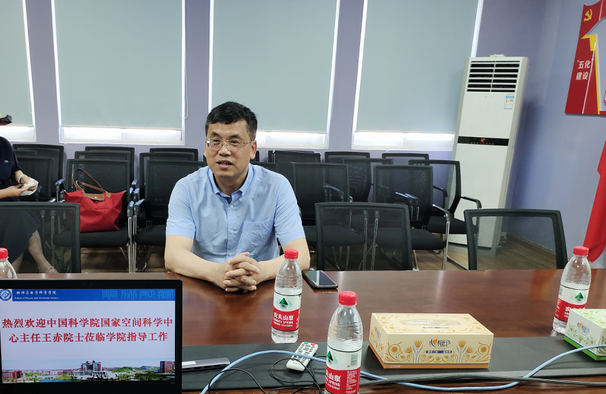 王赤院士在物理与电子科学学院书记张国强的陪同下参观了开云官网近地空间电磁环境监测与建模湖南省普通高等学校重点实验室,听取了实验室主任肖伏良教授关于学科团队及重点实验室在“十三五”期间的建设进展、所取得的工作成绩与工作设想。王赤院士对学科团队、实验室的“十四五”建设提出了宝贵意见。他提出实验室建设应该根据国家发展战略和重大需求制订建设规划,关注空间天气学的具体应用,并将研究领域从地球空间拓展到行星空间。王赤院士还指出物理与电子科学学院有完善的学科基础,实验室要由具体科学问题牵引,将理论研究、数值模拟与探测仪器研发有机结合,充分发挥学院的学科优势,充分服务于国家建设。此外,王赤院士还向参加会谈的青年学者介绍了我国空间科学的发展历程,鼓励青年学者坚持面向世界科技前沿,勇于挑大梁、当主角,为2035年基本实现社会主义现代化贡献力量。