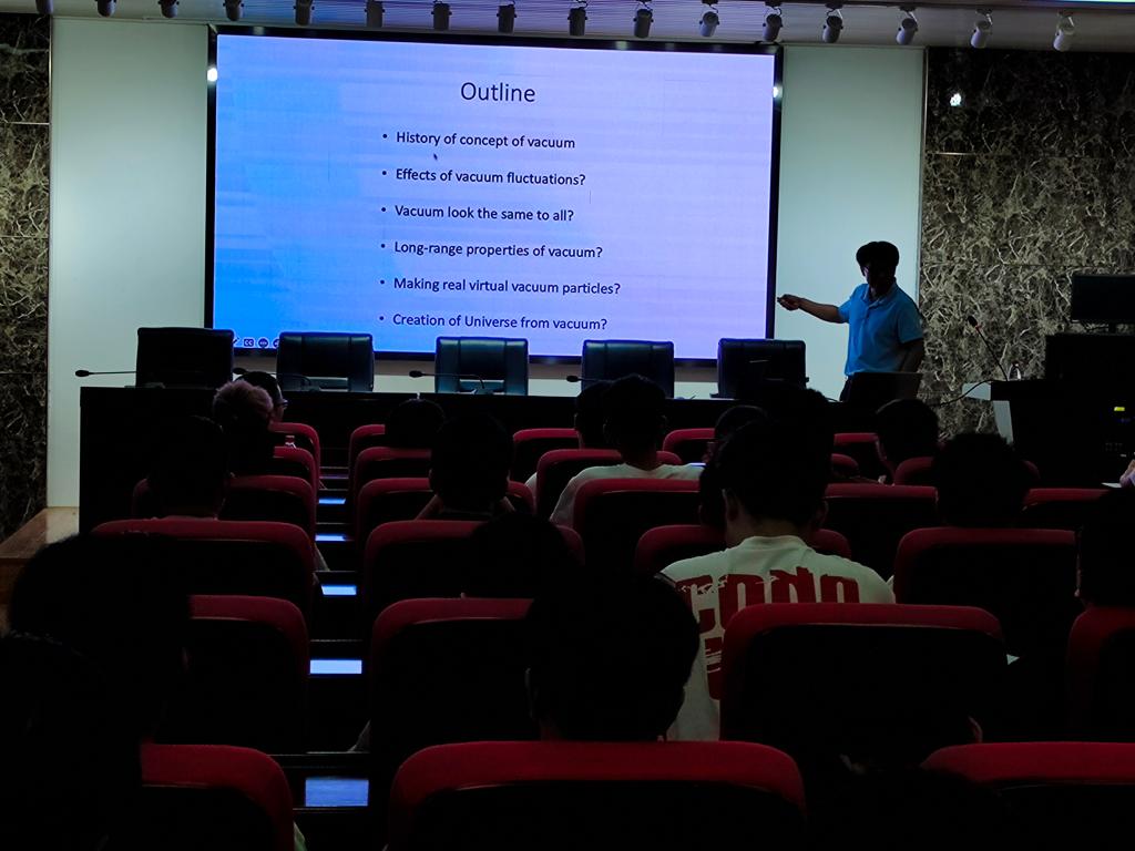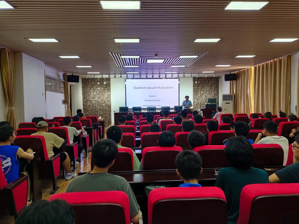 5月29日下午湖南师范大学余洪伟教授应邀来开云官网理科楼B413作了一场题目为“Detecting acceleration-modified vacuum fluctuations (Unruh effect) with quantum entanglement”的学术报告。学院物理专业教师和研究生、本科生共一百余人现场聆听报告,副院长(主持工作)张卫兵主持报告会。