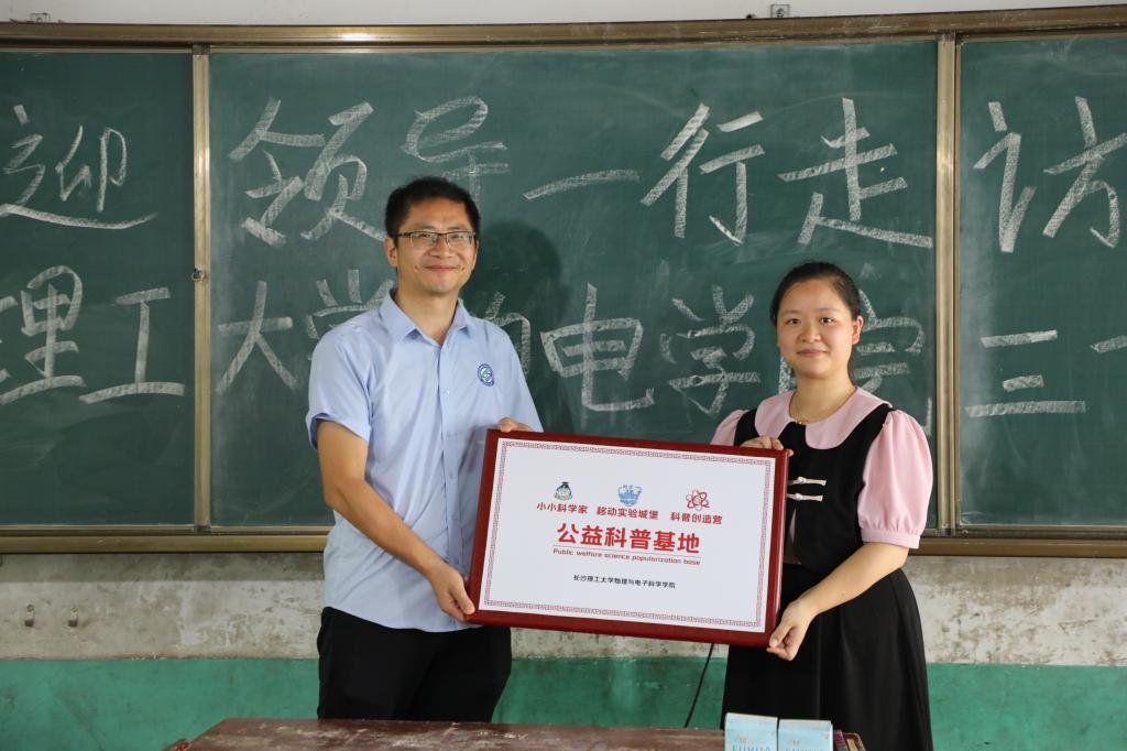 座谈会结束后,张国强向东山镇人民政府授予了“大学生社会实践基地”牌匾,张卫兵向继林学校授予了“公益科普基地”牌匾,希望推动学生社会实践团队走进乡村教育,为孩子们带来更多科学梦想。