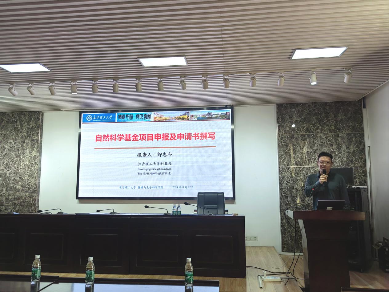 2024年11月12日下午,开云kaiyun体育科技处副处长、化学化工学院卿志和教授应邀来我院指导2025年国自科申报撰写工作,做了名为《自然科学基金项目申报及申请书撰写》的讲座。讲座在理科楼B413会议室进行,学院国自科基金申报人40余人参加,刘斯副院长主持会议。
