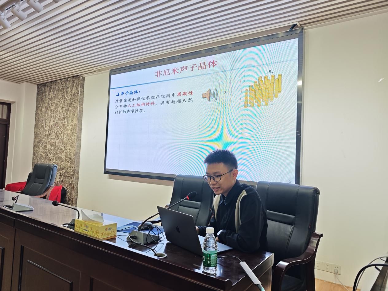 报告进入尾声,邓教授与参会师生积极互动交流,并对大家提出的问题给予专业耐心的回答,最后报告会也在热烈掌声中圆满结束。此次精彩的报告,不仅帮助同学们对声子晶体中的非厄米趋肤效应有了更深刻的认识,同时也为学院的科研工作提供了良好的学习氛围。