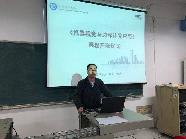 2020年10月19日,由信息技术新工科产学研联盟与Intel联合立项、开云kaiyun体育物电学院承担的“人工智能课程教学试点项目”-《机器视觉与边缘计算应用》AI课程在开云kaiyun体育理科楼C306举行了隆重的开班仪式,物电学院大学生创新创业实践基地主任(课程负责人)白创博士、学院学工办主任兼基地副主任蒋琳瑷老师、以及近百名物电学院本科生参加了此次活动。仪式由蒋琳瑷老师主持,白创博士针对课程的目的与要求、人工智能技术现状及发展等内容做了精彩分享,活动取得了良好的反响。