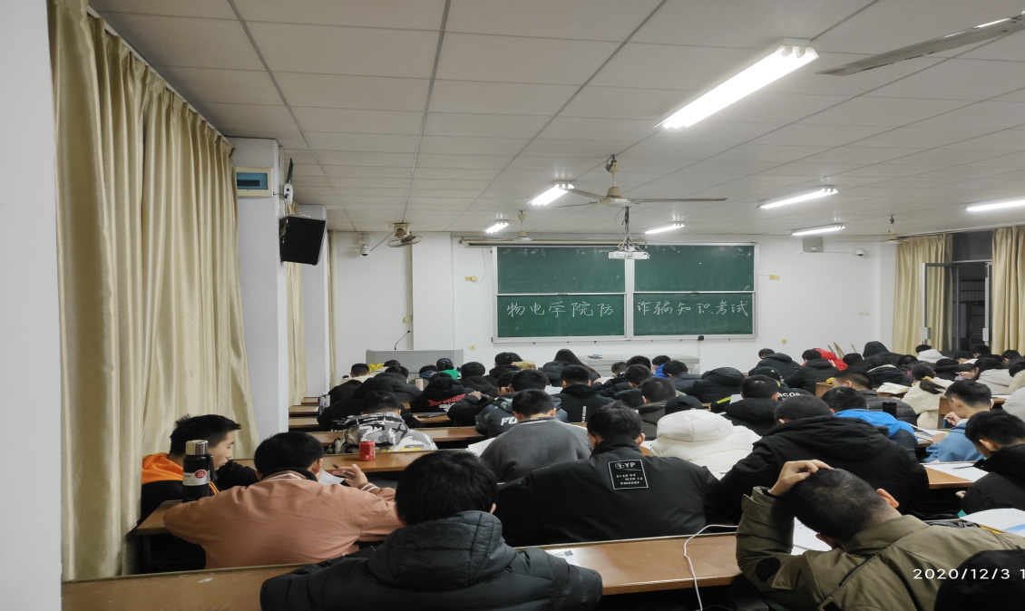 临近年末,各地诈骗案件频发,为进一步增强同学们的防范诈骗意识,提升防范诈骗能力,12月3日物电学院统一组织全院同学进行了“防范诈骗 你我同行”-防诈骗知识考试。
