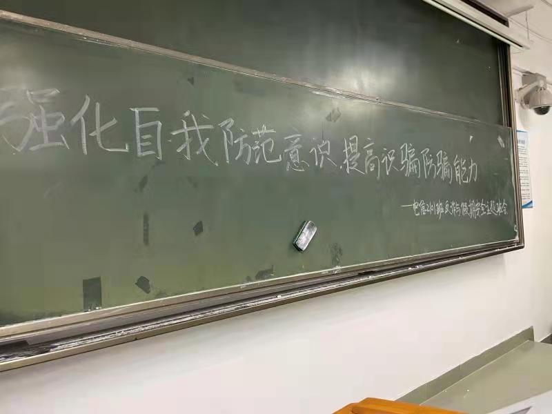 在班会成功开展完成之后,学院对新生开展一次反诈知识考试,强化了巩固学习成果。同时,物电学院反诈志愿队队员向班级宣传防诈骗知识,对涉“两卡”(银行卡、电话卡)的同学进行摸排。