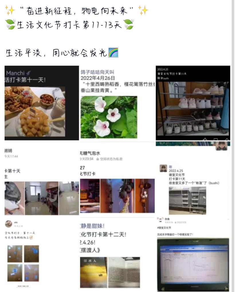 在此期间,同学们积极打卡,将自己的寝室环境、生活动态等分享至自己的社交平台,分享内容各式各样,促进了各寝室间的相互了解及友谊桥梁的搭建。 本次活动丰富了寝室文化,增强了寝室成员之间的团结合作精神,营造寝室的温情、和谐气氛,使同学们彼此勉励、互相进步,为生活、学习、工作注入了正能量。