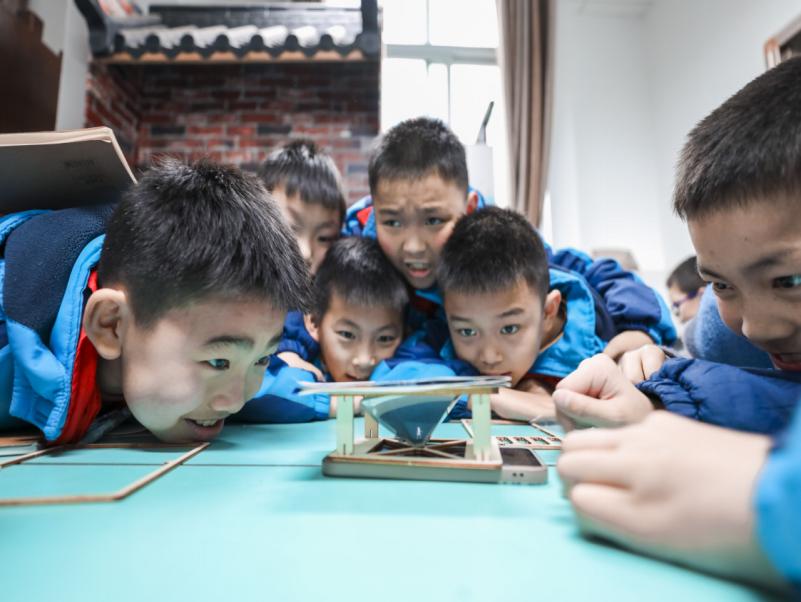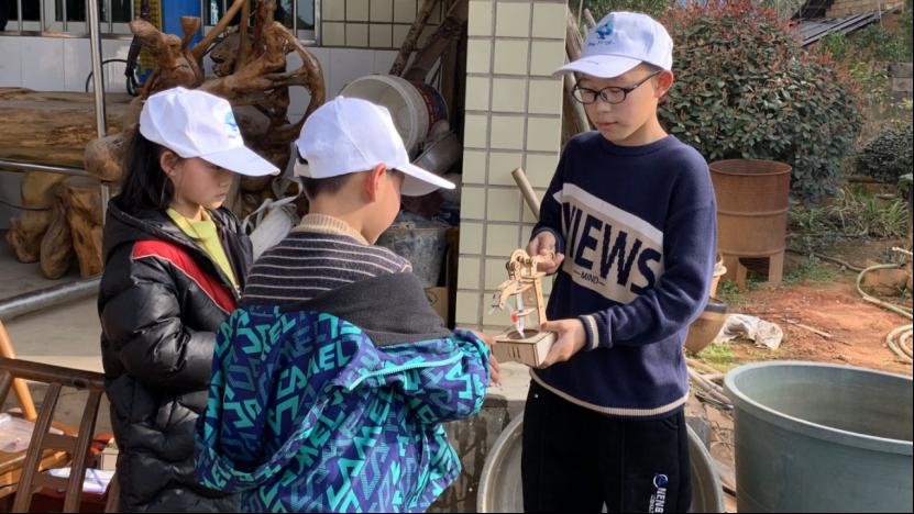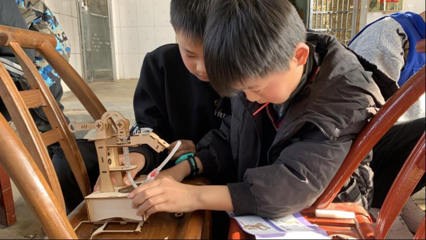 “小小科学家”志愿者们带领孩子们来到了“城堡”前。城堡内精美的实验器材、益智玩具让孩子们爱不释手。城堡外,大哥哥大姐姐们架起了移动电子屏,现场为孩子们上起了生动有趣的“科学课”。课后,志愿者们还带领小朋友们在山野田间就地取材,做起了“杠杆压力抽水机”的科学小实验。孩子们两两一组,互相比拼谁完成的速度更快更好,欢声笑语在乡间田野久久回荡。