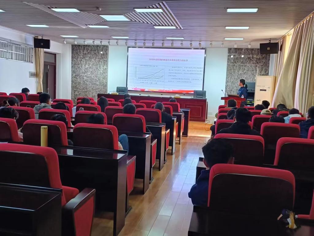 本次宣讲的主题是“从弱国外交到大国外交,中华民族正崛起”。主讲人梁欣怡围绕着我国外交状况从近代到现代的历史发展脉络,分析了中国经济飞速发展的同时,国际地位不断提升的原因。她讲到新中国外交的历史进程可以划分为三个阶段,第一个阶段是站起来;第二阶段是富起来;第三个阶段是强起来。今天,我们比历史上任何时期都更接近、更有信心和能力实现中华民族伟大复兴的目标。