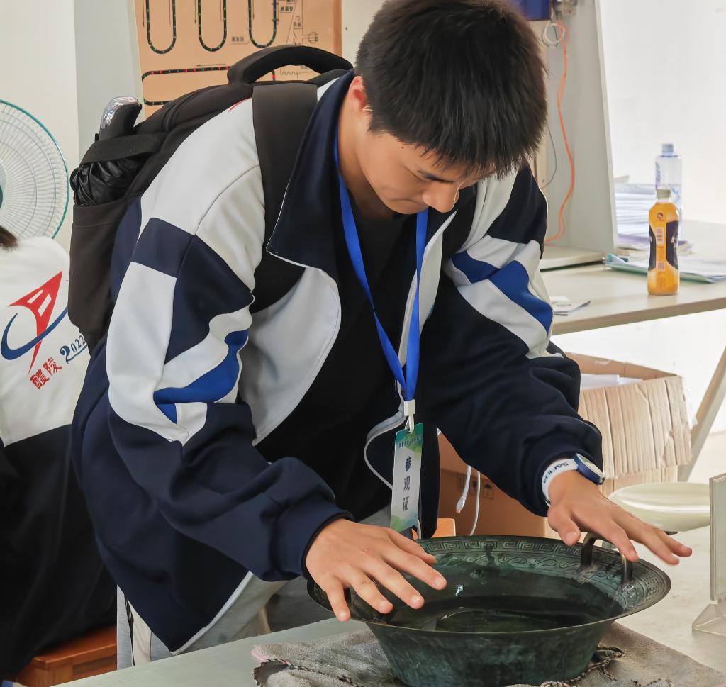 随后,醴陵二中的同学来到云塘校区实验楼B402实验室亲手对各种有趣的实验进行动手操作,在共振演示、科里奥力演示(转盘)、椎体爬坡、转动惯量演示、逆风行舟……等实验中,大家都在互相讨论,实验室充满了一片欢声笑语。行是知之始,知是行之成,同学们在实践中不仅收获了快乐,同时对知识的了解也更为透彻。