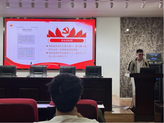接下来,支部纪检委员黄积新同志分享了考公经验,黄积新同志以初面试第一的成绩顺利进入考公的最后一轮筛选,他的分享为学弟学妹们提供了新的选择。张俊伟同志顺利保研至中南大学,其学习及竞赛经验让大家受益匪浅。李科与曾钦云同志均以高分上岸湖南大学与开云kaiyun体育,两位分享自己的备考历程,并鼓励同学们积极考研,努力拼搏。