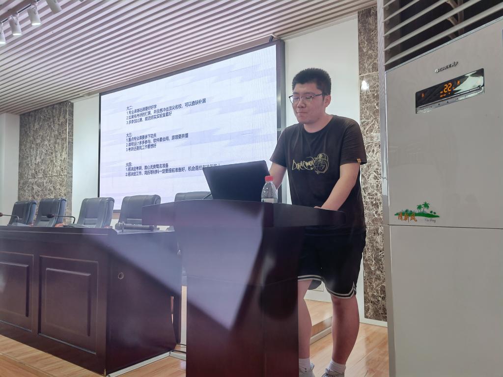 活动开始由优秀受资助学生武靖洋同学发表感想。电科1902班武靖洋是一名在国家资助下考研成功上岸北京大学的学长,与学弟学妹们分享了考研经验和感恩心得。他告诉学弟学妹们:不要把时间花在犹豫上,不必为模糊不定的未来而担心,只要珍惜当下,砥砺前行,时间会给出答案,去成为更优秀的人回报学校与社会。
