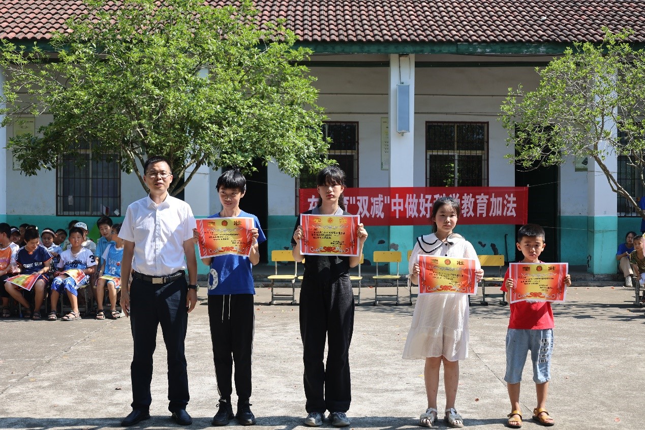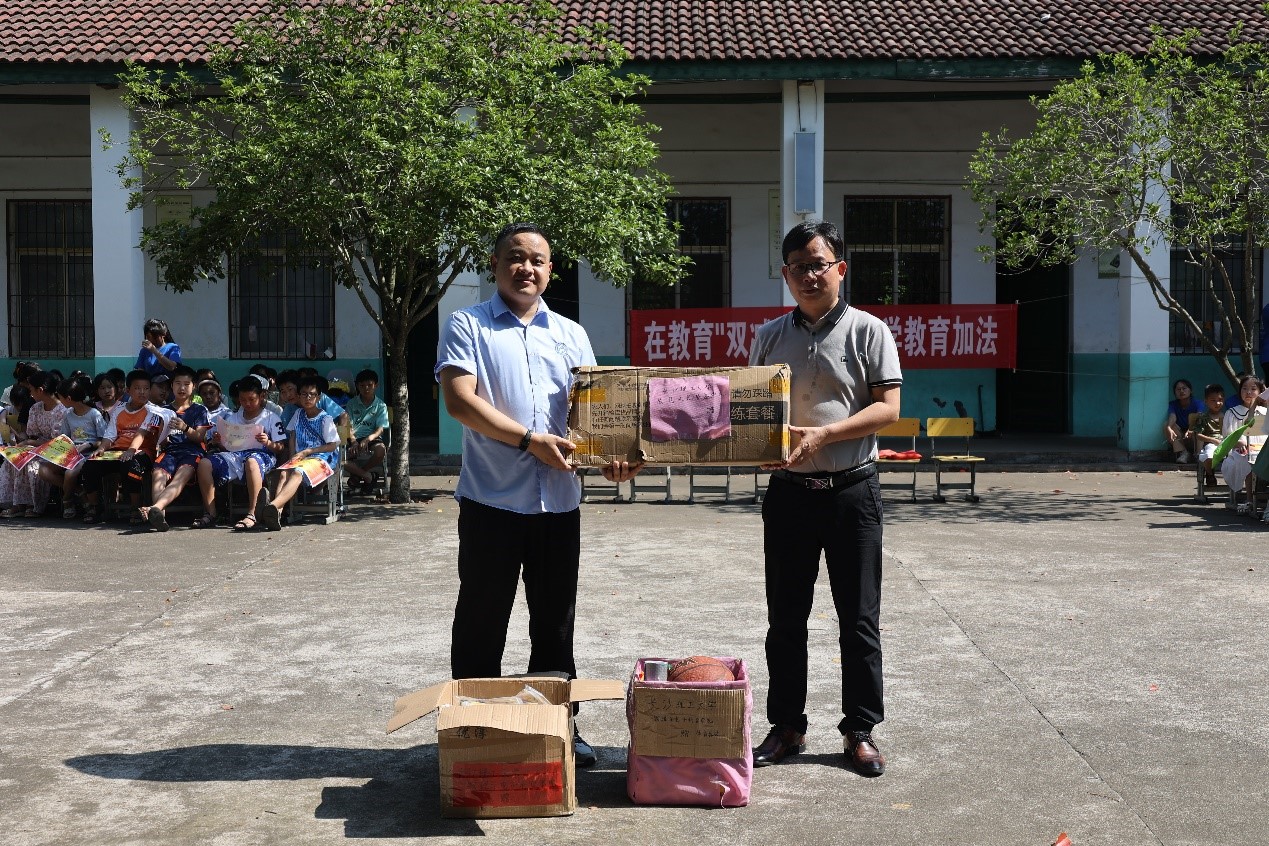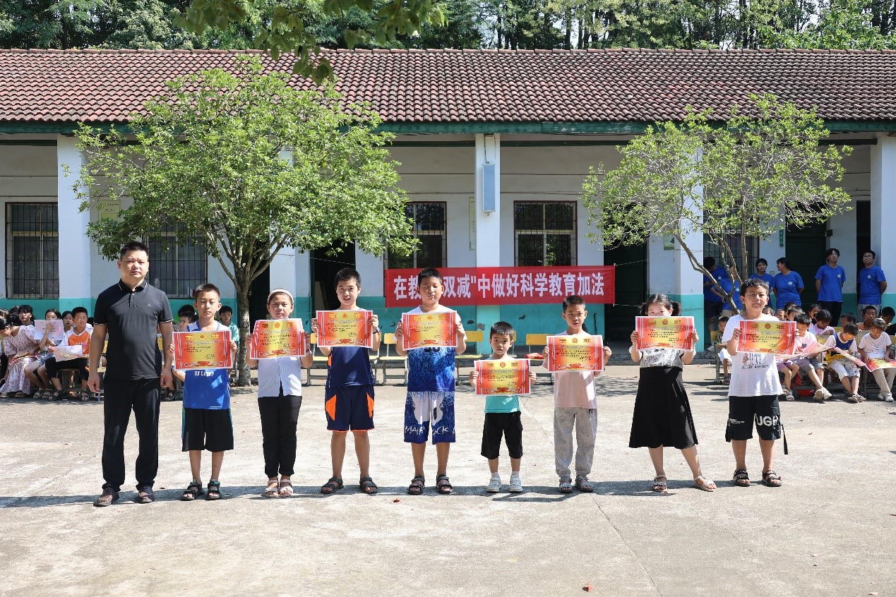 清晨,支教队员们已经忙碌起来对会场进行简单的布置。今天是他们展示三下乡活动成果的时候,不敢有一丝懈怠。华容县县政府和东山镇镇政府的领导嘉宾们齐聚一堂,见证了这一特别时刻。华容县人民政府副县长谢海情、东山镇人大主席段旭东、东山镇人大副主席沈婧、东山中学书记周峰、开云kaiyun体育物电学院团委书记赵俊程在热烈的掌声下一一入座。随着领导们就座,同学们安静下来,活动主持人继林小学校长黄静充满激情地宣布结营仪式开始,预示着这场精彩纷呈的仪式即将上演。