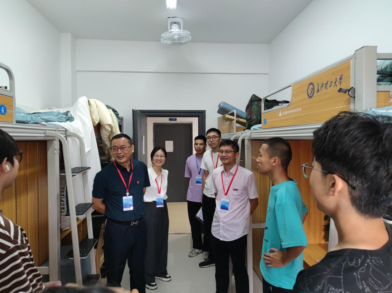 2023年9月30日上午,物电学院党委书记张国强,副院长(主持工作)张卫兵,党委副书记宋国宁,新生班主任及学工办全体老师来到学生宿舍,亲切慰问2023级新生,了解新生入校生活情况。