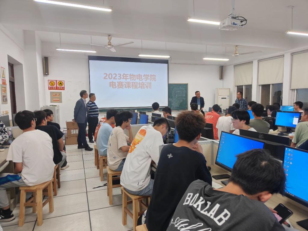 为提升本科生创新创能力,贯彻落实本科生创新创业能力培养工程行动计划,物电学院2023/2024学年第一学期电子竞赛培训班于10月16日晚上7:00在理科楼C306正式开班。物电学院党委书记张国强、副院长(主持工作)张卫兵、副院长范志强及创新创业中心主任宾峰参加开班仪式。