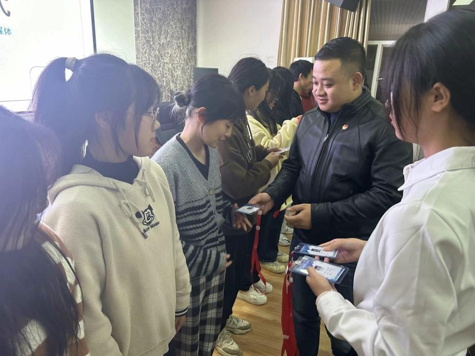 首先由赵俊程老师为各位学生会新成员授予工作牌兼合影留念,并寄语大家珍惜这份荣誉,认真履行职责,为学院的发展建设贡献力量。