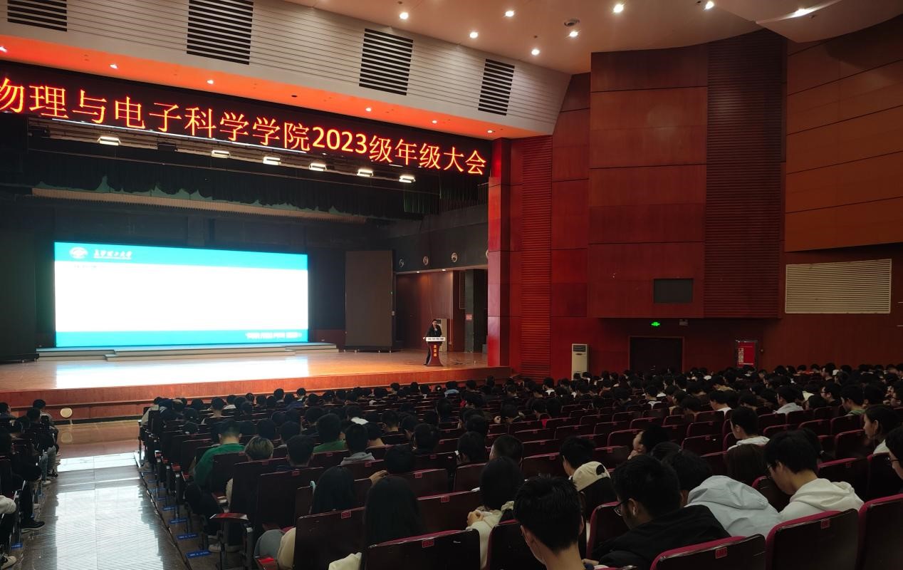 2024年3月27日,物电学院召开了2023级年级大会,全面总结了23级上一学期的学习生活。学院党委副书记宋国宁出席会议,2023级全体学生参加会议,会议由2023级辅导员姚巍主持。